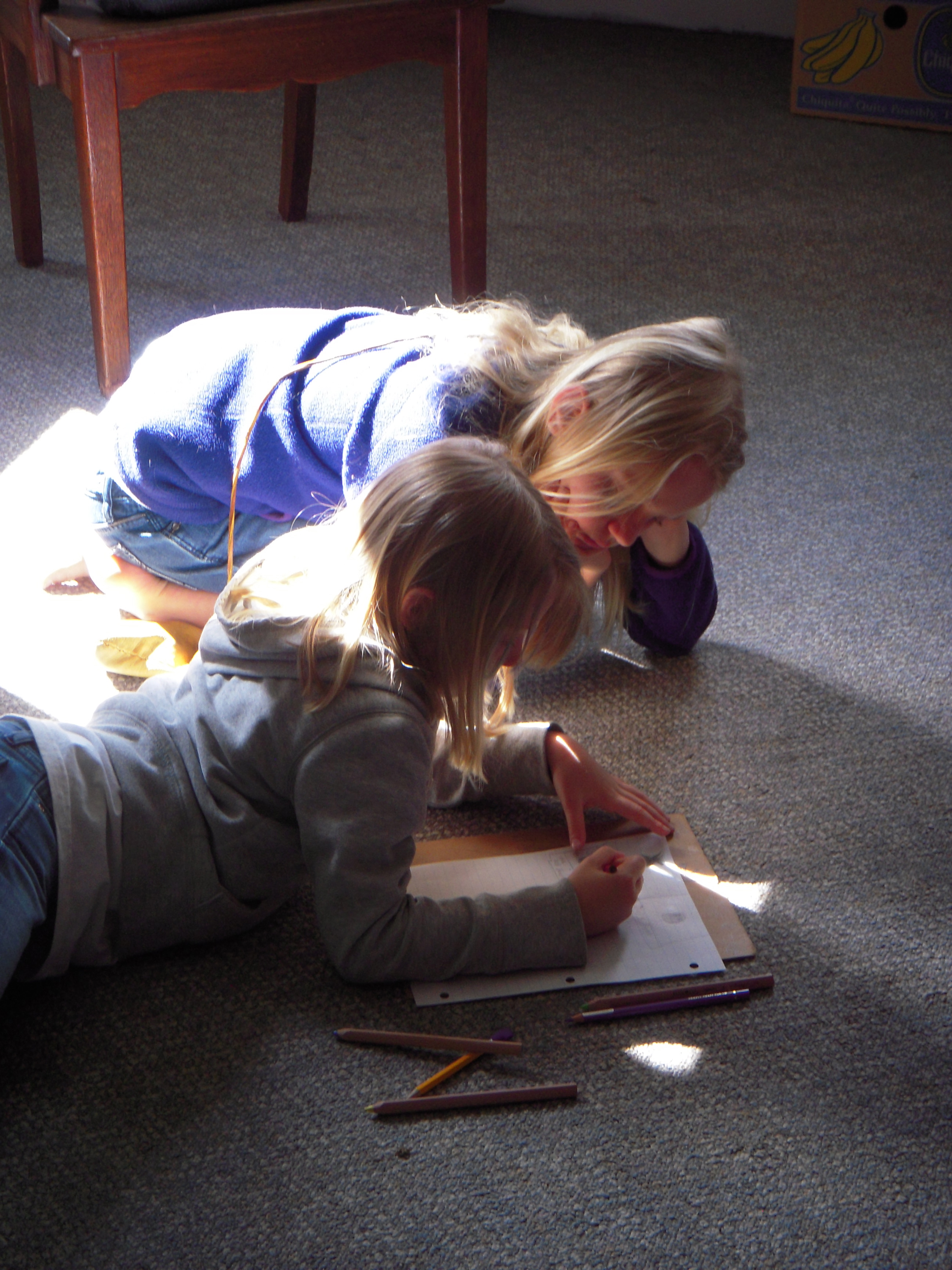 Art is incorporated into writing lessons, as we make illustrated books of our work. We close the day with singing: rounds, seasonal songs, silly songs, beautiful songs, ballads, camp songs and more.