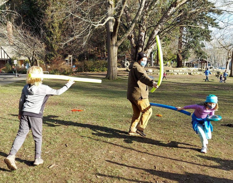 Each day at Frog Hollow includes two project blocks and a snack in the morning, at least an hour at the park after lunch, and another block for writing games or poetry in the afternoon. We begin with a circle where we practice spelling, punctuation, grammar, and word roots and we end with twenty minutes of singing. The online class follows a different rhythm, without the outdoor play and singing, but with wiggle games and plenty of fun.